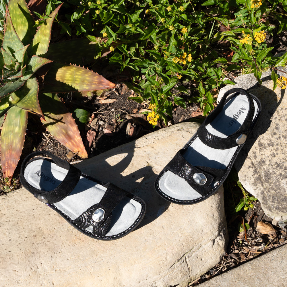 Vienna Swirling Black Sandal - Alegria Shoes