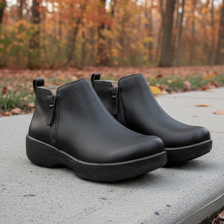 Oaklee is a women's casual leather low ankle boots with double zippers that combine comfort, style, and versatility, making them a must-have addition to your footwear collection. Crafted from high-quality leather, these comfortable shoes provide durability and a timeless look that pairs effortlessly with various outfits. The double zippers add both a fashionable touch and practical functionality, allowing for easy on-and-off wear.